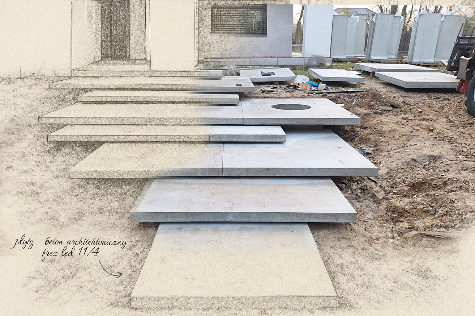 Specjalizujemy się także w projektowaniu elementów ze spieków i betonu architektonicznego – stołów, blatów, schodów, prefabrykatów oraz detali architektury zewnętrznej. Opracowujemy koncepcje podejść do domu, ogrodów, ogrodzeń, altan i małej architektury, dbając o spójność stylistyczną całego otoczenia.